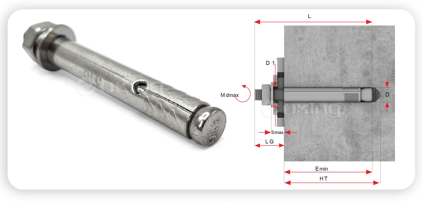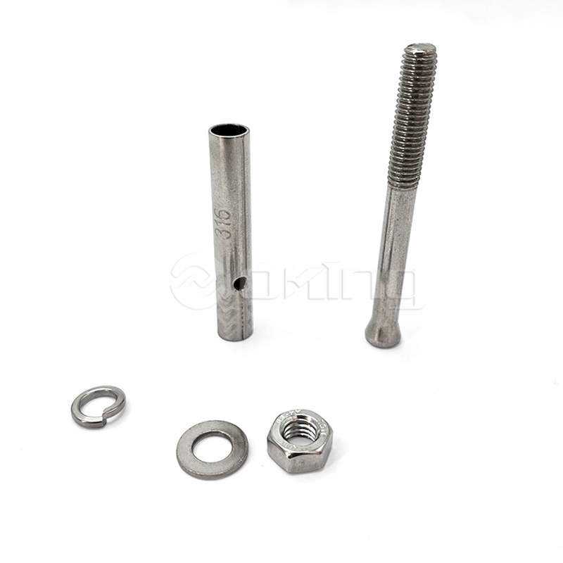 1. 即時固定:ハンマーでナットを締め、スリーブを完全に拡張します。