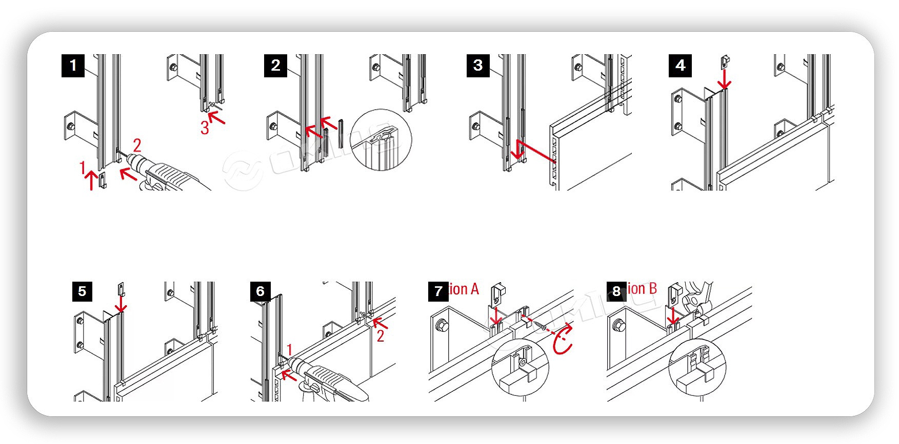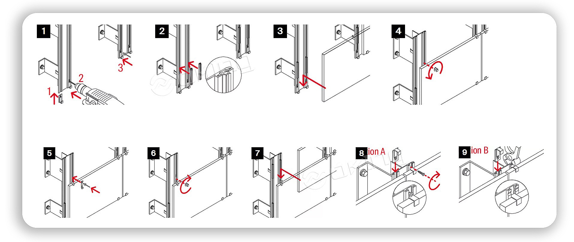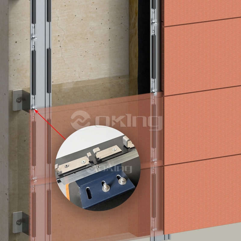 特殊なファサードパネル固定システム: テラコッタパネルの隠蔽設置とセラミックパネルの露出固定の両方に対応します。多様な用途ニーズに対応する複数のバリエーション オプションを備え、薄いファサード パネル (セラミックなど) の露出固定用の可視エッジ クランプと、テラコッタ パネルの隠し固定用の内蔵エッジ クランプを採用し、安定したカスタマイズされた固定効果を保証します。