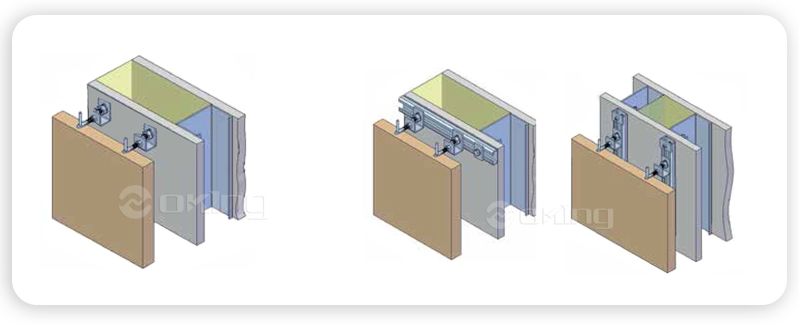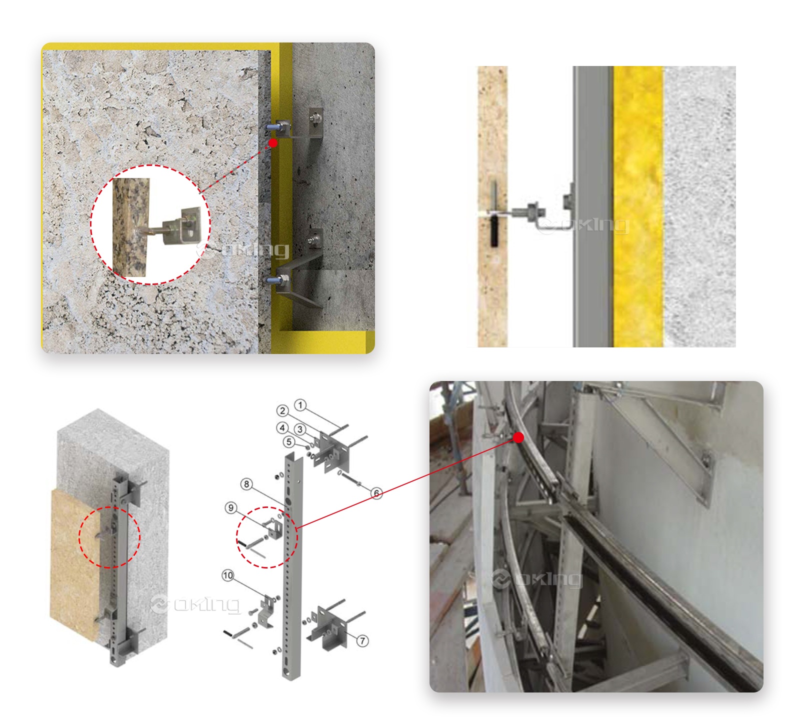 設置プロセスには、ネジやボルトなどの適切な留め具を使用して垂直ブラケットを壁または構造物に取り付けることが含まれます。次に、パネルや外装システムなどの水平ブラケットが、設置される対象物に取り付けられます。水平ブラケットは垂直ブラケットと連動するように設計されており、安全で信頼性の高い接続を実現します。