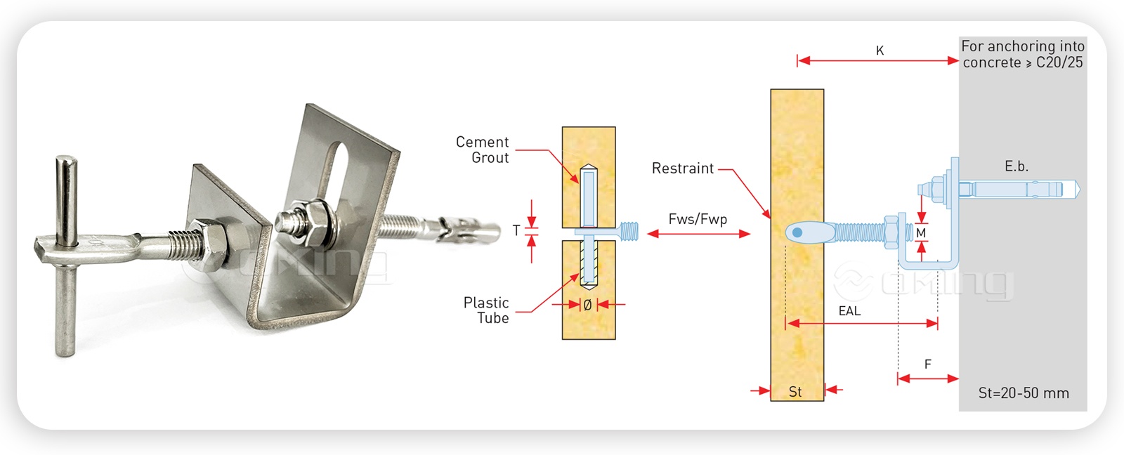 | K(mm) | K - (mm) | K(mm) | F(mm) | Fwp (N) | FWS(N) | EB(mm) | Φ(mm) | M(mm) | T(mm) | EAL(mm) | |
